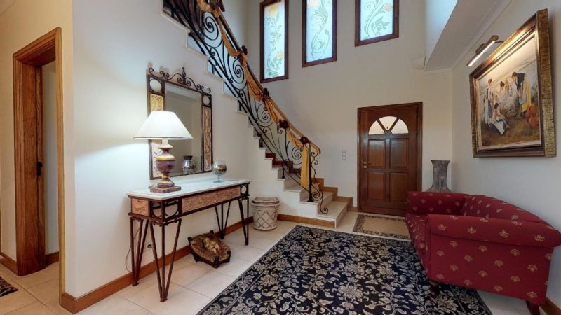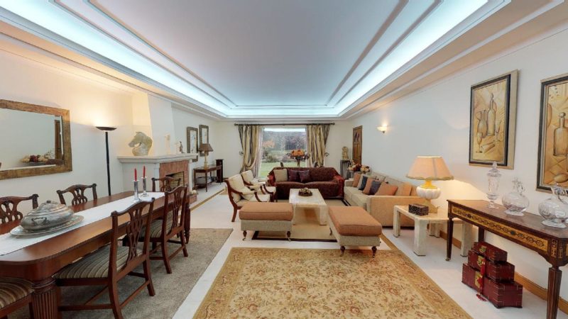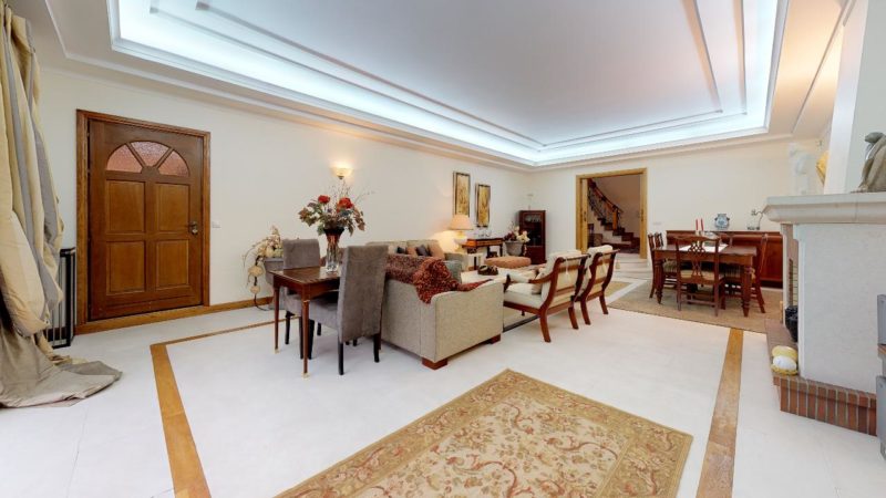 Cette charmante villa se compose de 3 étages, sous-sol, rez-de-chaussée et 1er étage. Elle comprend 5 chambres, toutes avec vue sur le jardin, 5 salles de bain, une grande cuisine entièrement équipée avec un îlot, un coin repas et une cheminée. Salon, salle à manger, salle de jeux, cave à vin, buanderie, terrasse, cuisine rustique avec barbecue et four à bois avec abri voiture et table pour vos invités. Une fois à l’intérieur, dans le hall d’entrée, vous trouverez un magnifique escalier incroyablement romantique situé dans un grand couloir menant au 1er étage. Depuis le hall d’entrée, vous pouvez voir la salle à manger et salon spacieux qui nous mènent à l’arrière où l’excellente fenêtre permet de voir tout le jardin. Les 3 cheminées (cuisine, salon, salon au sous-sol) sont synonymes de chaleur en hiver bien que toute la maison dispose du chauffage central avec chaudière à gaz. À la lumière naturelle, la villa est composée de plusieurs espaces pouvant être adaptés aux goûts et aux besoins. Le sous-sol procure une sensation d’espace constamment enveloppé de lumière et donne accès à l’intérieur et à l’extérieur.